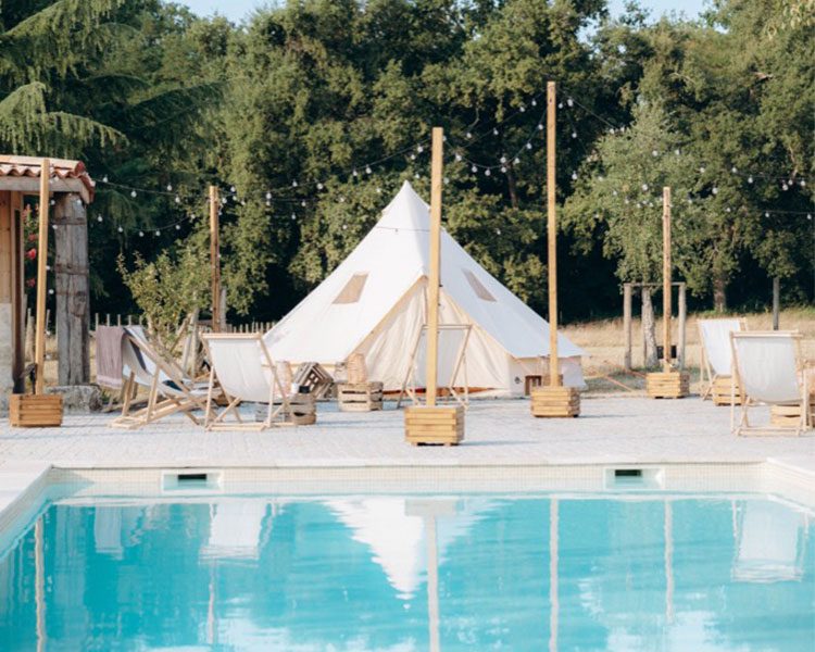 Capacité d’accueil par nuit au Domaine de Badine, gîte et tipis compris : 40 couchages